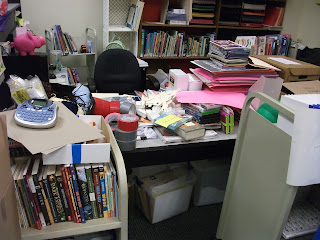 - Oh boy. I made a concerted effort to clear some of the projects off my desk and cart, but bogged down in the evening when there were incidents and busyness and crazyness. A patron told me it's all due to five planets colliding or something and I'll take it.